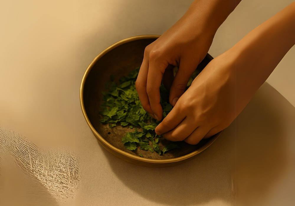 Brahmi, Kavi, and Mansi Pushpe are gently infused for 21 days — soaking in silence and strength.