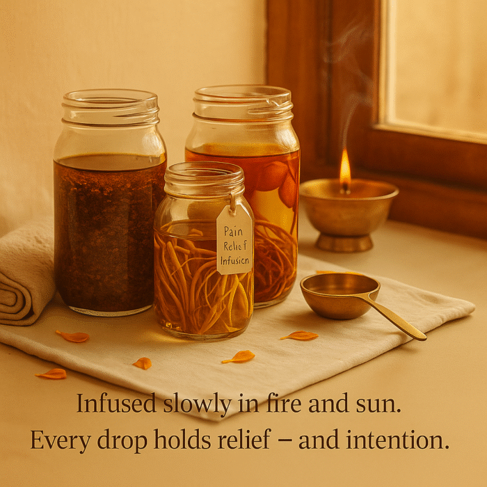 ·  Infused with “Om Shri Dhanvantre Namaha” mantra & slow, sacred herbal infusion