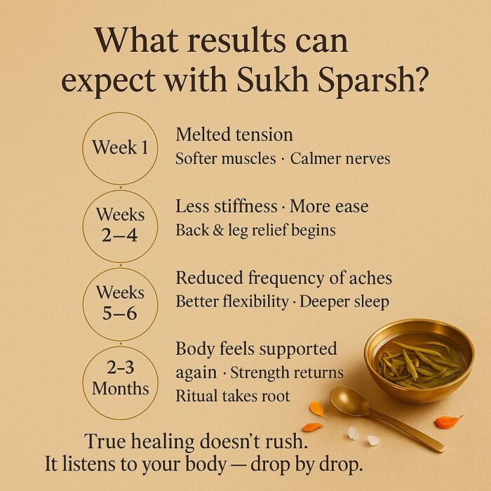 The name ‘Sukh Sparsh’ means “a healing, comforting touch”, reflecting the therapeutic intent behind every bottle.