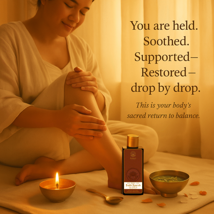 A sacred Ayurvedic pain relief blend, handcrafted with time-honored herbs. Perfect for shoulder stiffness, back pain, leg aches, and joint discomfort, Sukh Sparsh is a must-have oil for every home. Especially beneficial for elderly family members and for mothers undergoing the traditional 40-day postpartum massage, this ritual helps relieve deep-seated pain, melt away stress, and restore natural mobility.